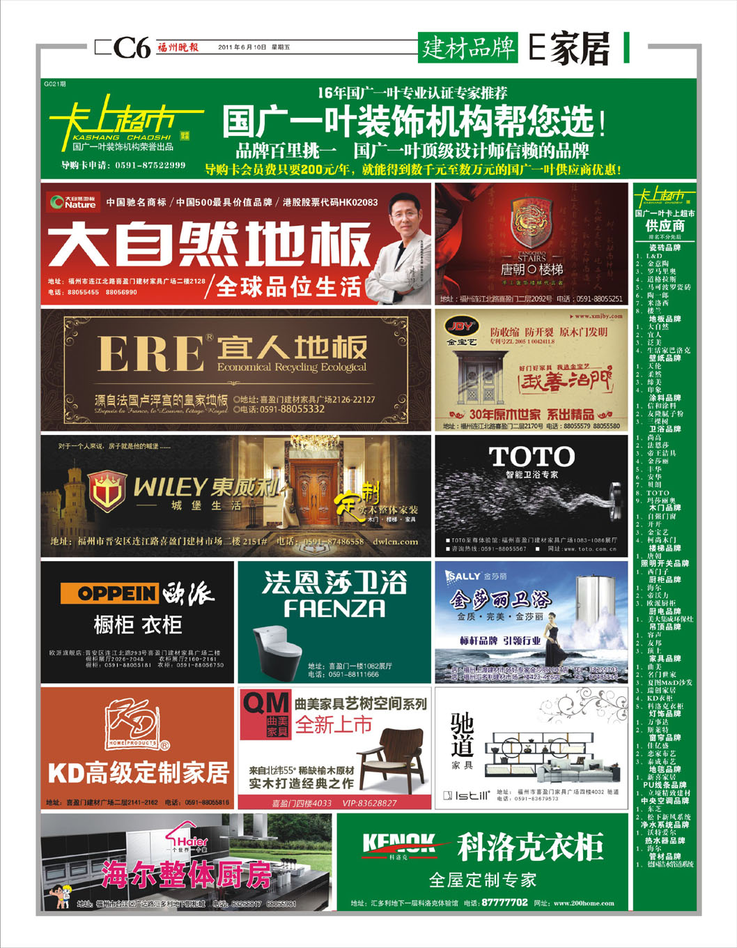 刊登报纸:福州晚报 刊登日期:2011/6/17 位置版面:E家居-2版 期数编号:G021-G022