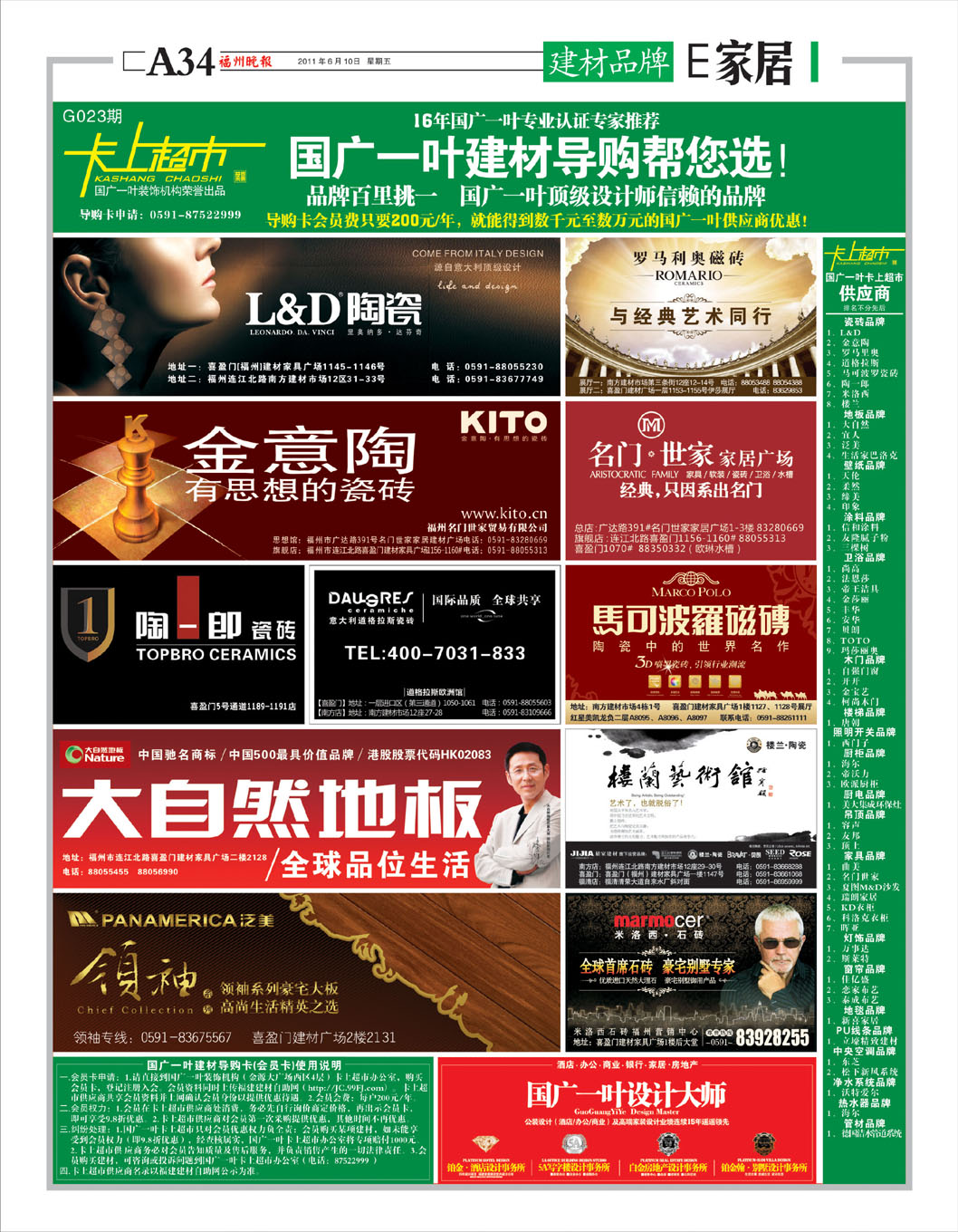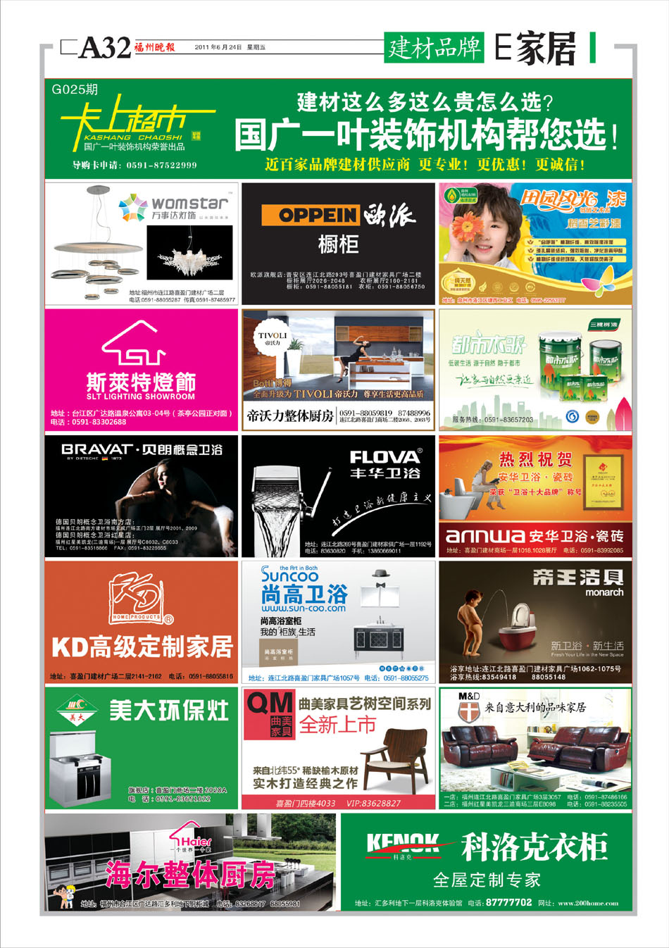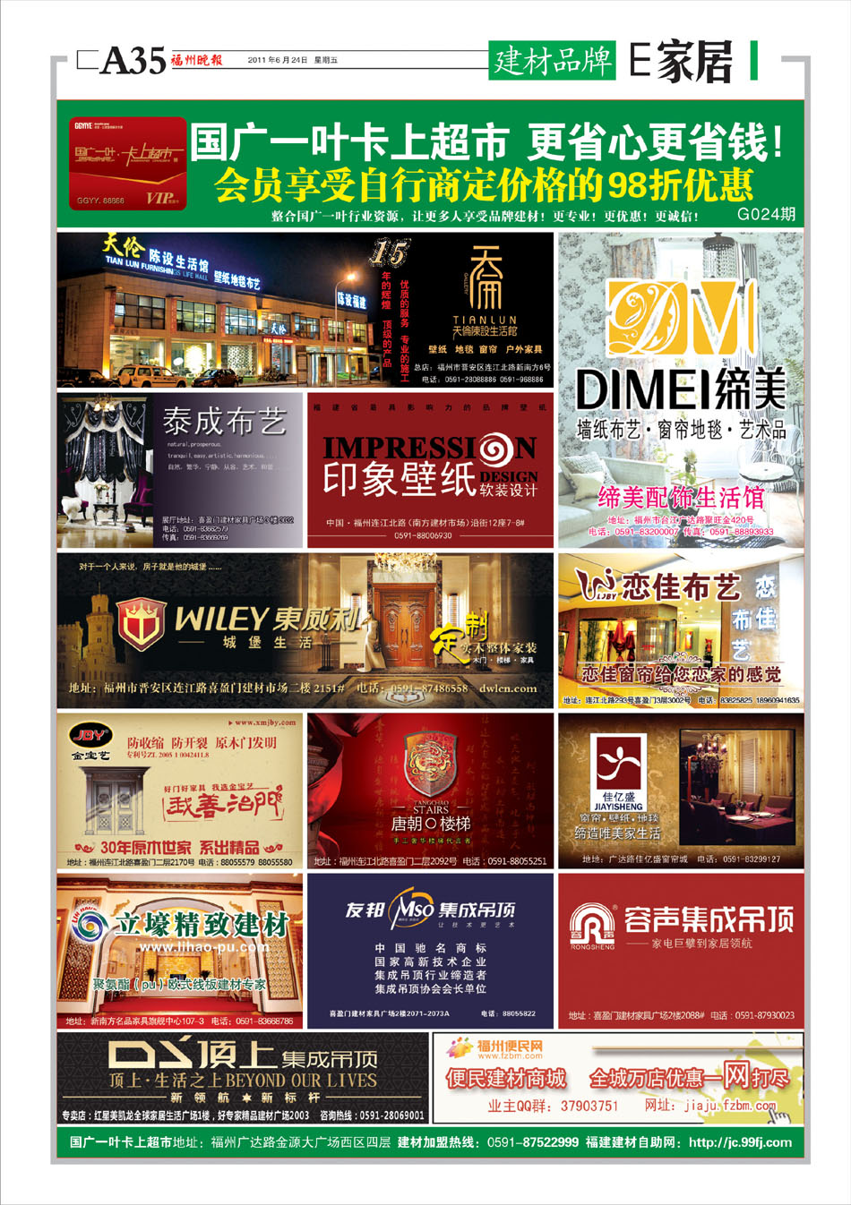 刊登报纸:福州晚报 刊登日期:2011/6/24 位置版面:E家居-3版 期数编号:G023-G025