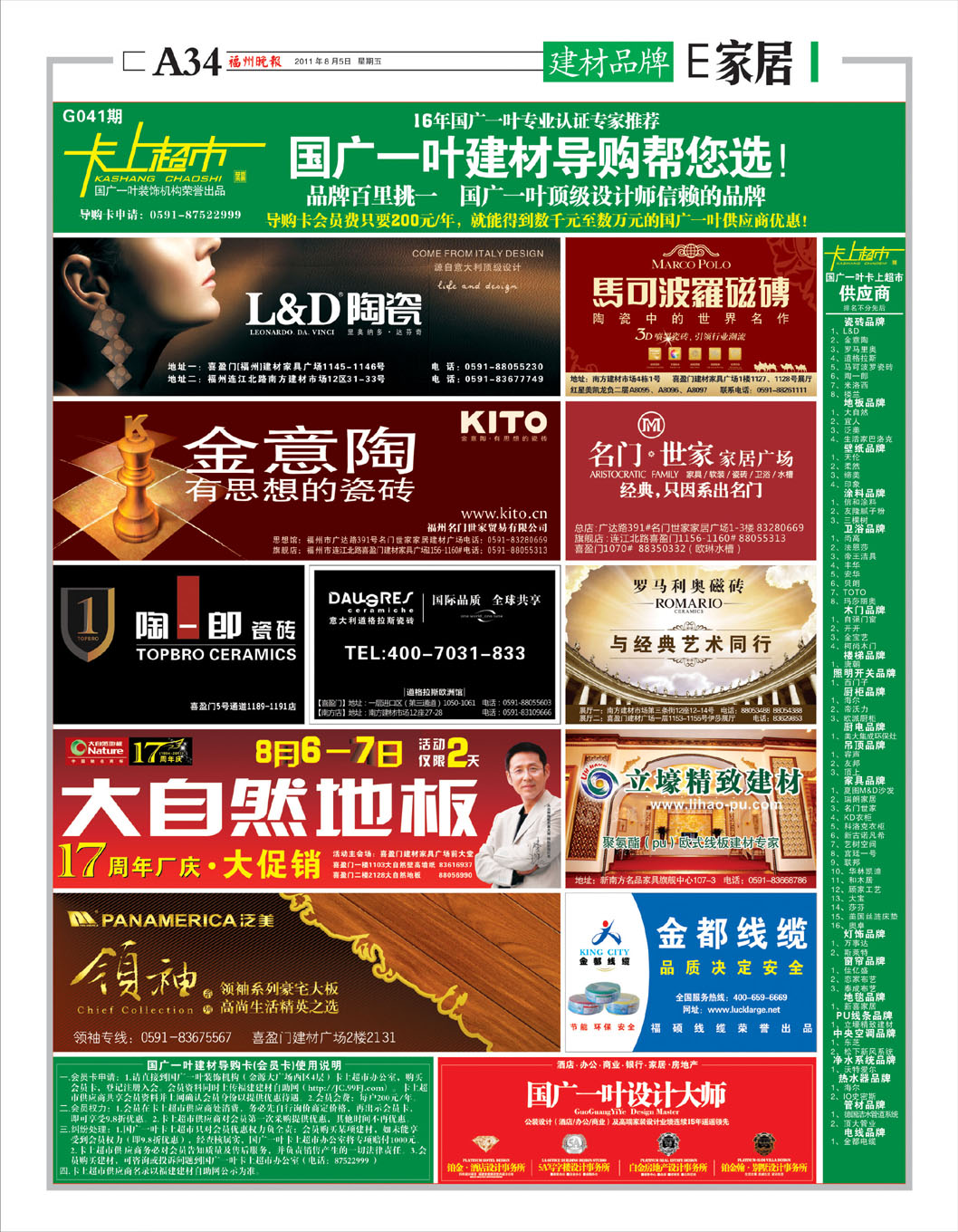 刊登报纸:福州晚报 刊登日期:2011/8/5 位置版面:E家居-3版 期数编号:G041-G043