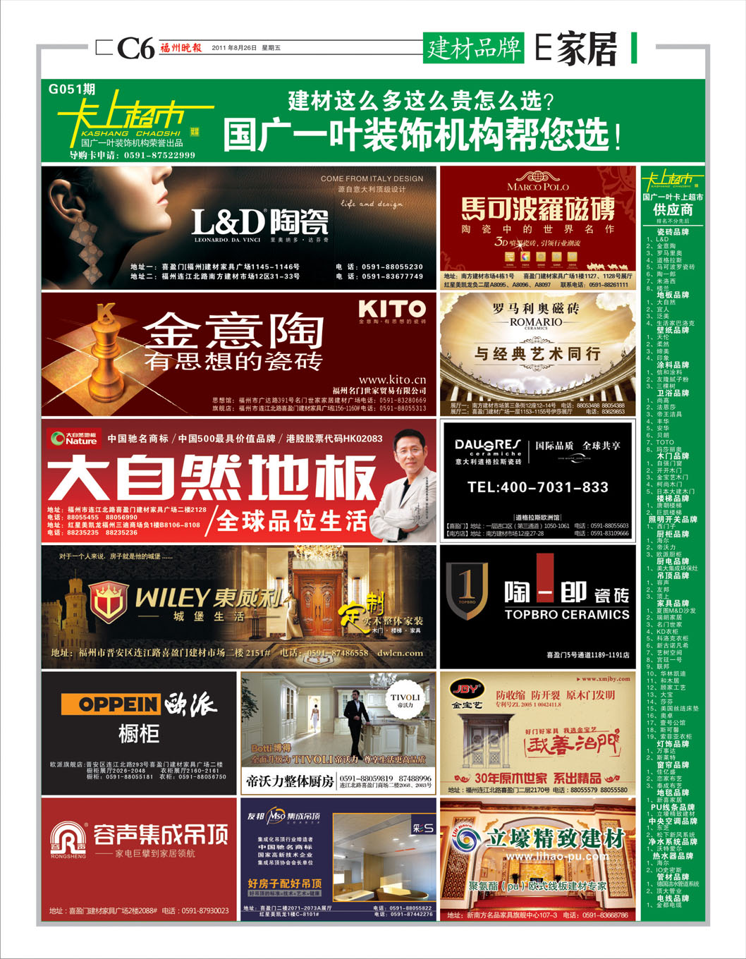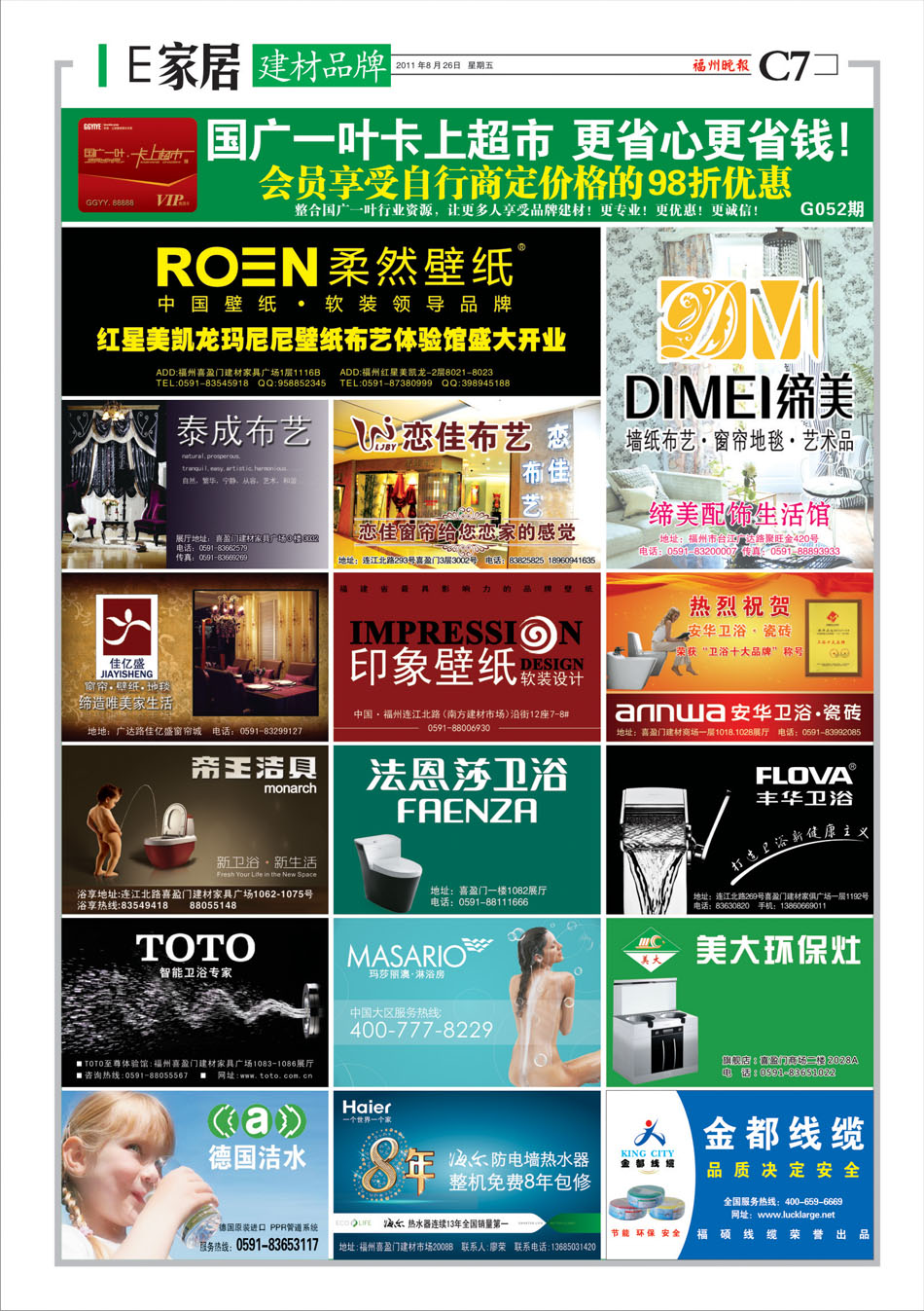 刊登报纸:福州晚报 刊登日期:2011/8/26 位置版面:E家居-3版 期数编号:G050-G052