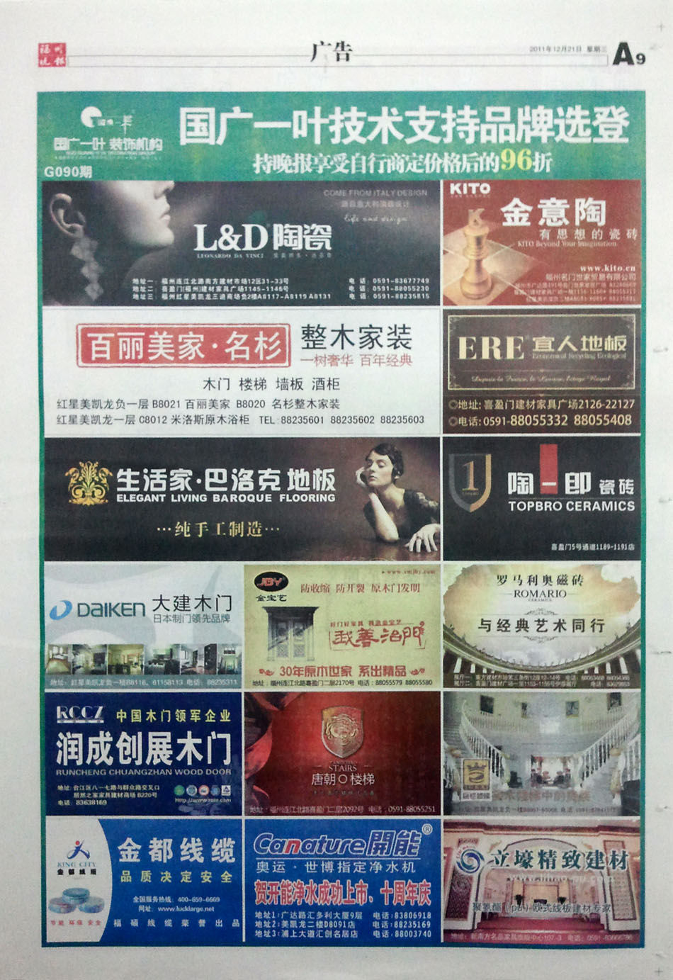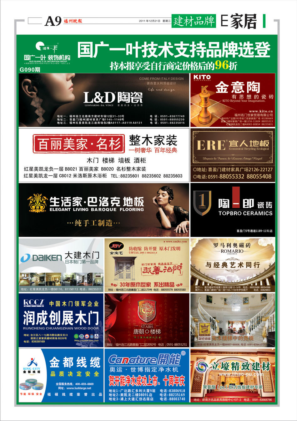 刊登报纸:福州晚报 刊登日期:2011/12/21 位置版面:E家居-1版 期数编号:G090