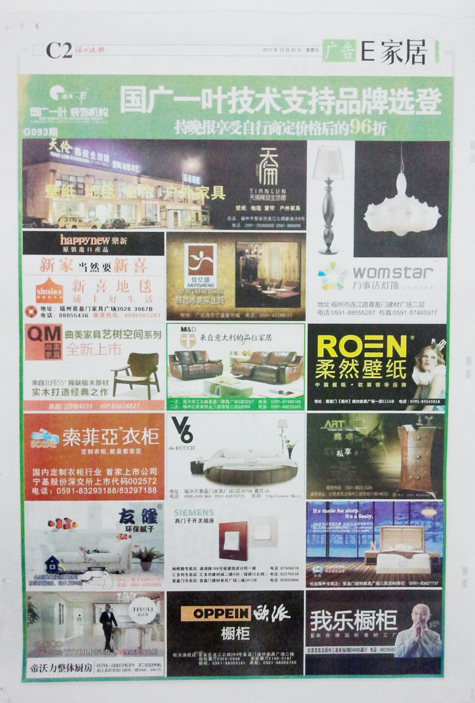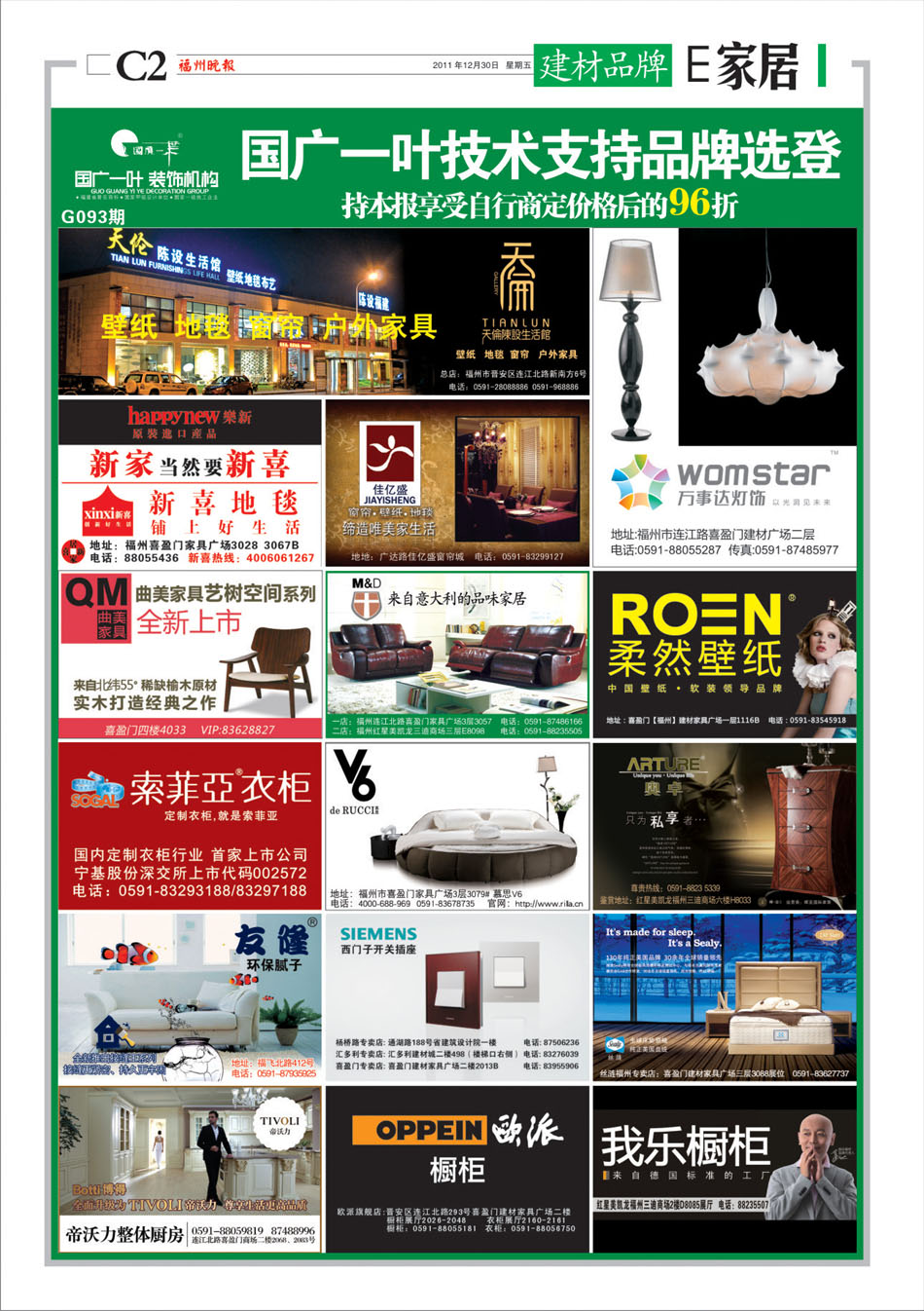 刊登报纸:福州晚报 刊登日期:2011/12/30 位置版面:E家居-1版 期数编号:G093