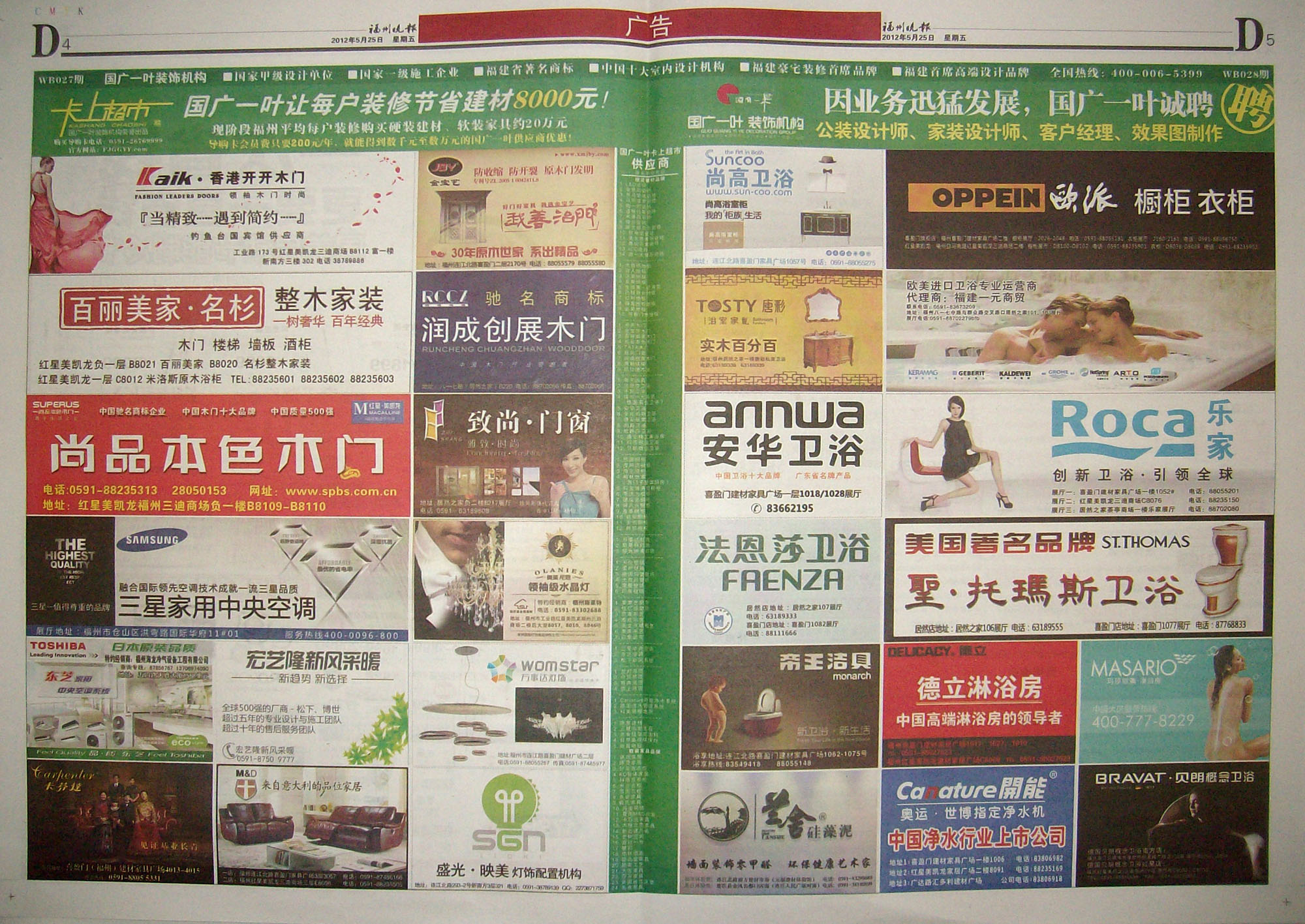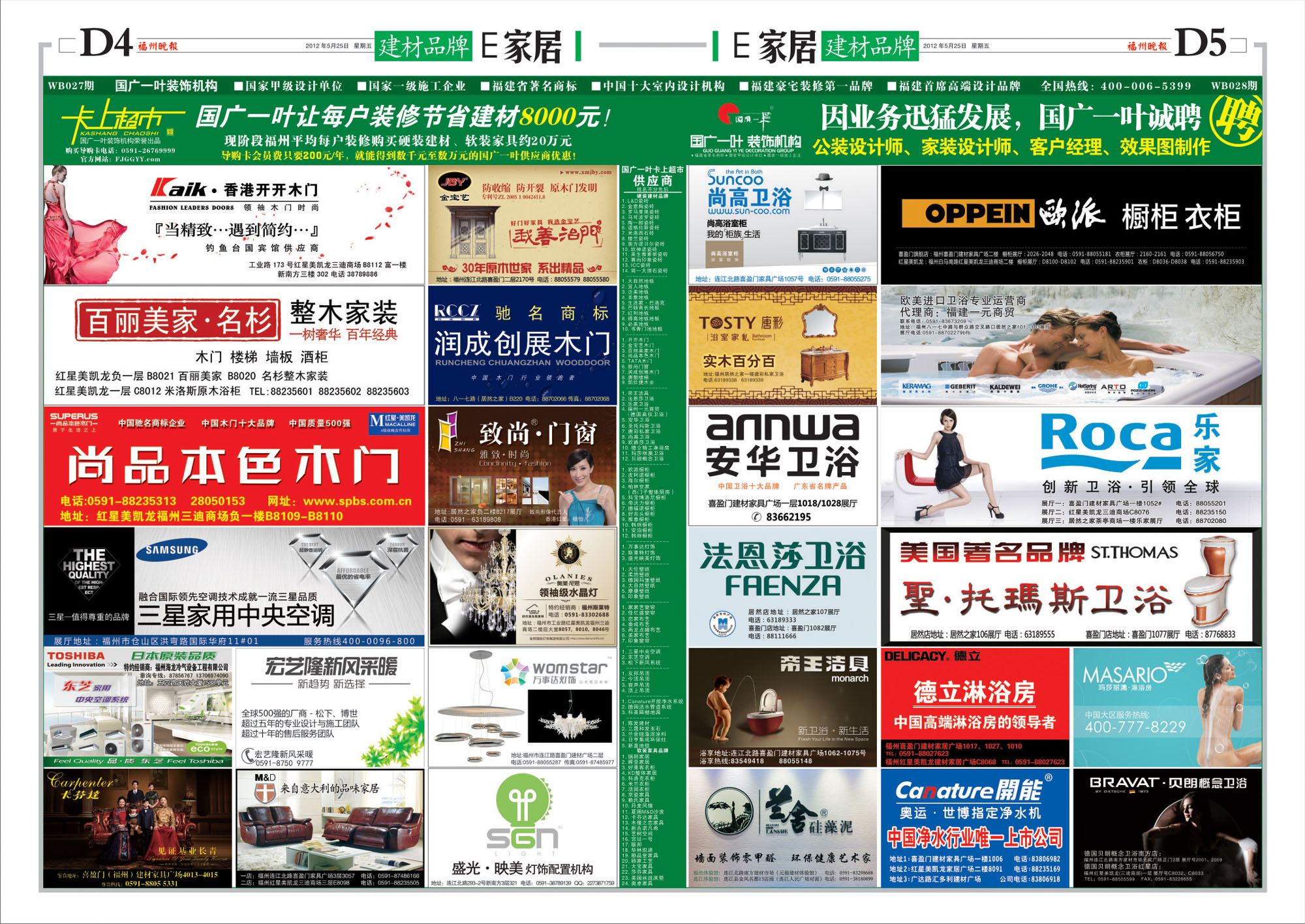 刊登报纸:福州晚报 刊登日期:2012/5/25 位置版面:E家居-2版 期数编号:WB027期-WB028期