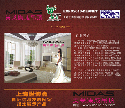 美莱集成吊顶是上海世博会唯一集成吊顶参展商,集成吊顶十大品牌,广东集成吊顶第一品牌,现正向全国招商