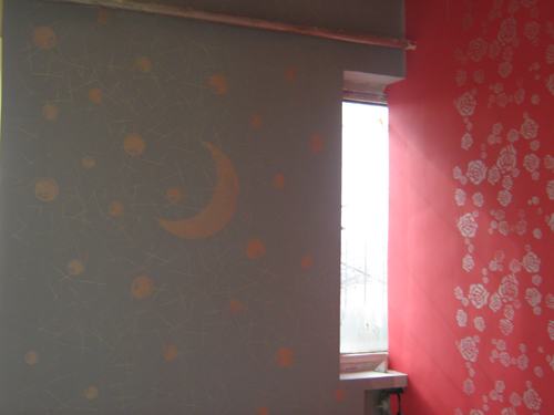 8、盟佳液体壁纸漆通过专用模具,就可以为您的墙面印出各种风格各异的图案。