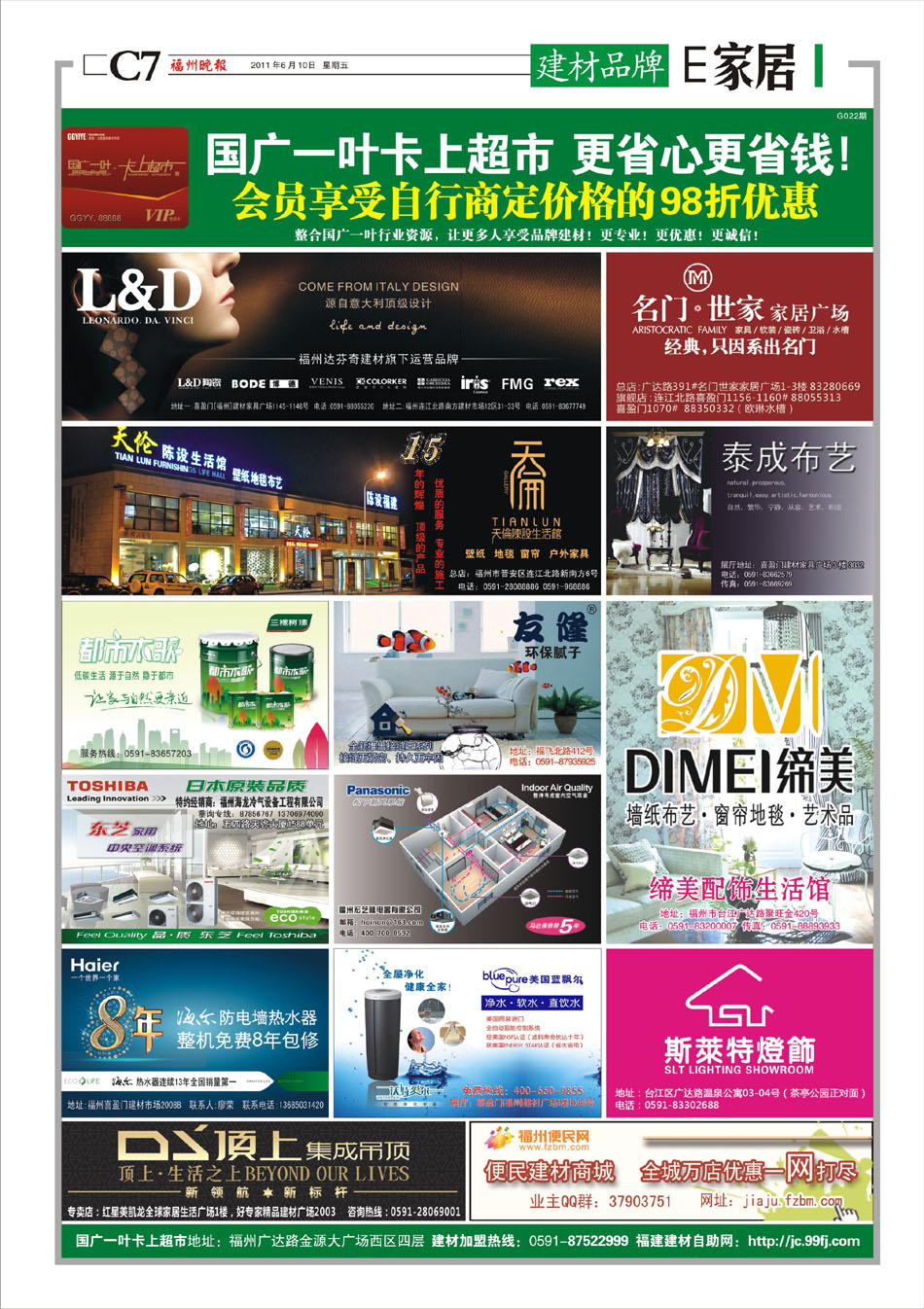 刊登报纸:福州晚报 刊登日期:2011/6/17 位置版面:E家居-2版 期数编号:G021-G022