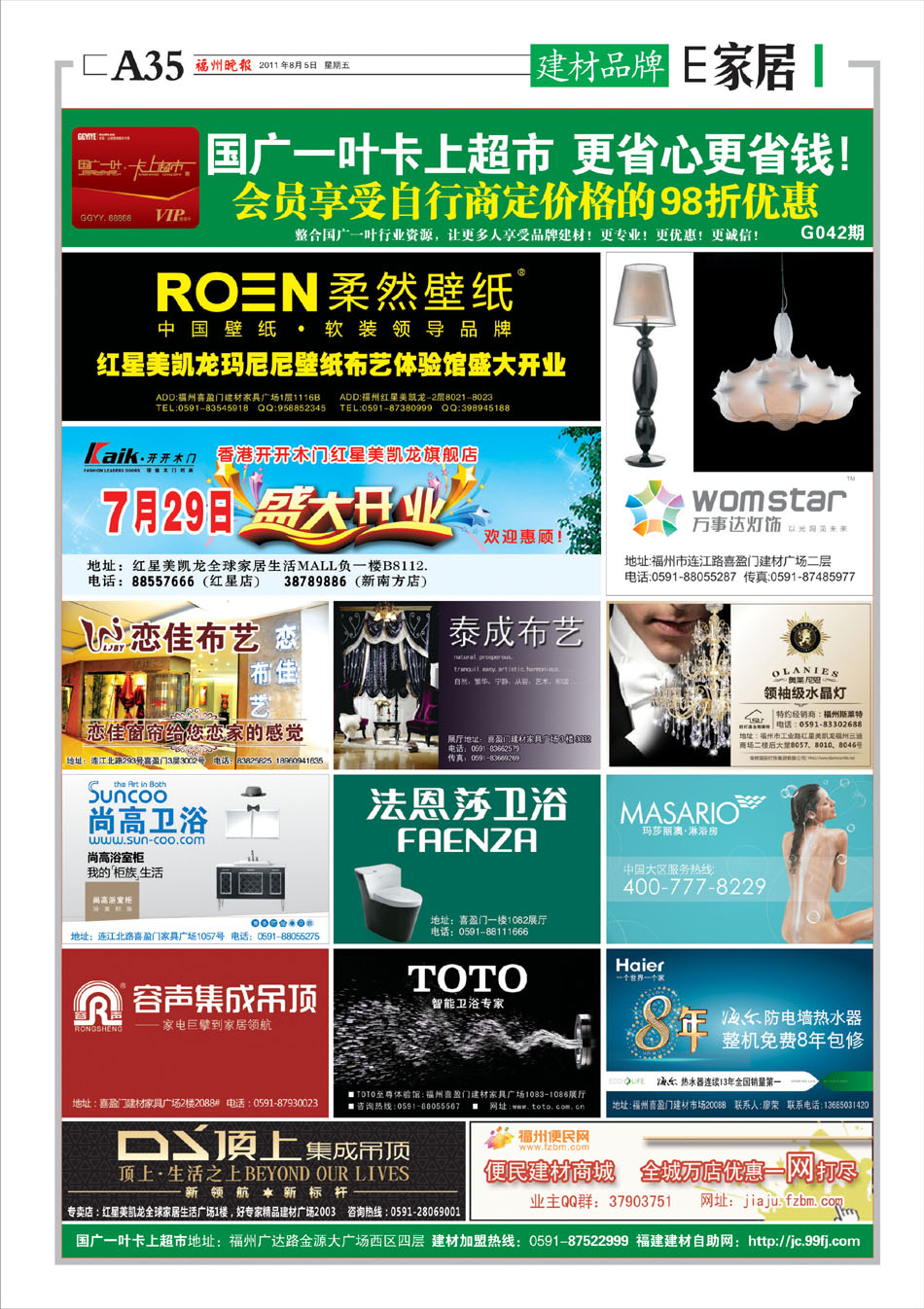 刊登报纸:福州晚报 刊登日期:2011/8/5 位置版面:E家居-3版 期数编号:G041-G043