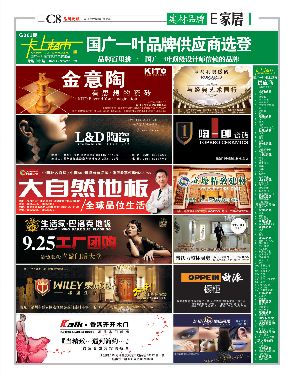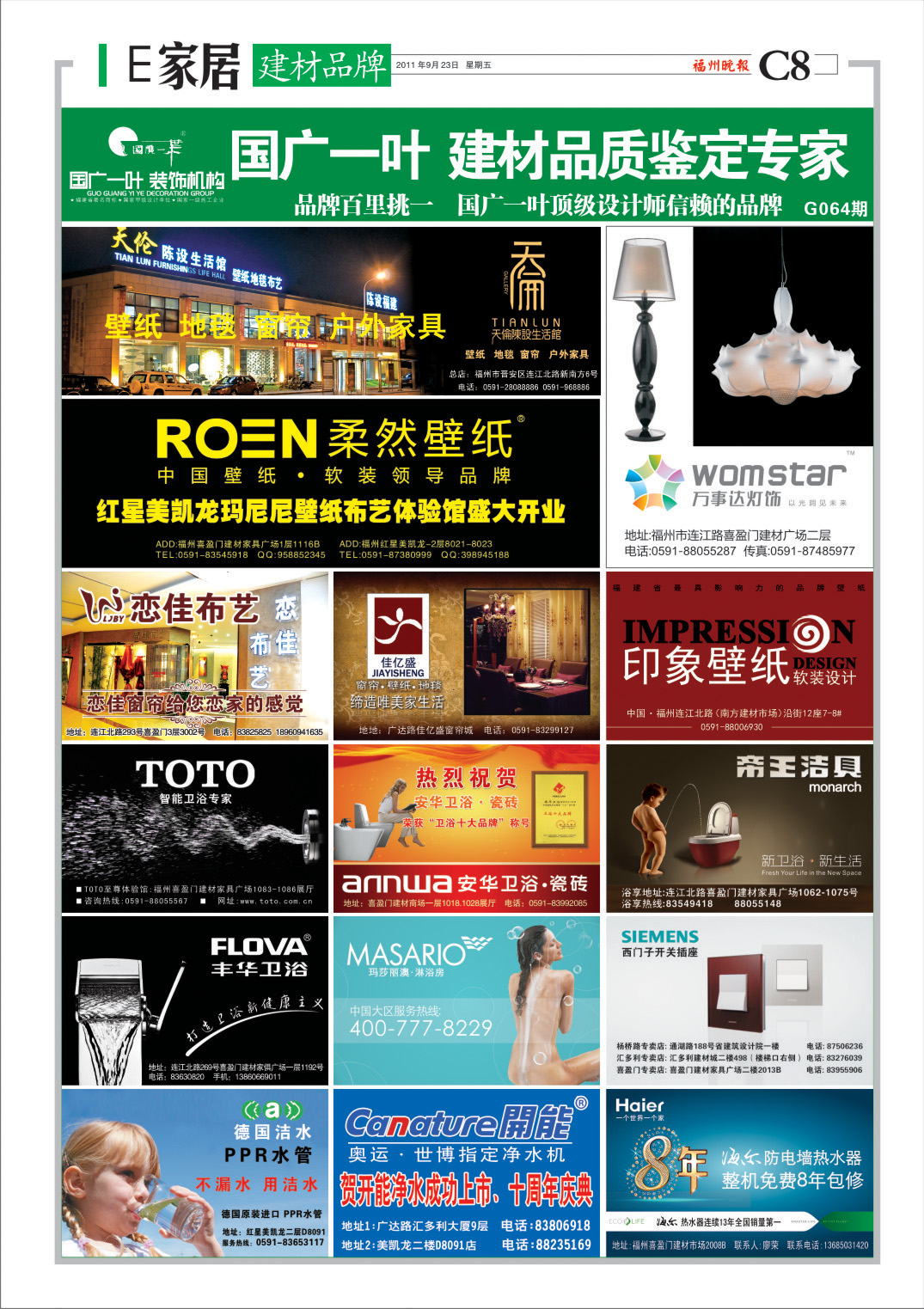 刊登报纸:福州晚报 刊登日期:2011/9/23 位置版面:E家居-3版 期数编号:G063-G065