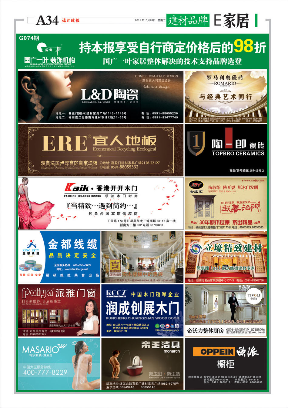 刊登报纸:福州晚报 刊登日期:2011/10/28 位置版面:E家居-2版 期数编号:G074-G075