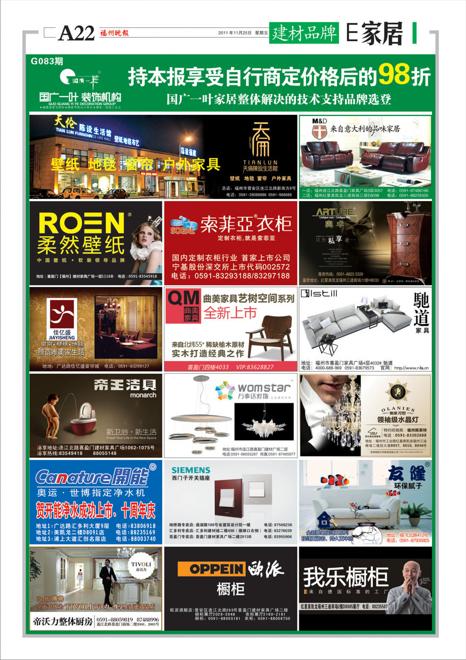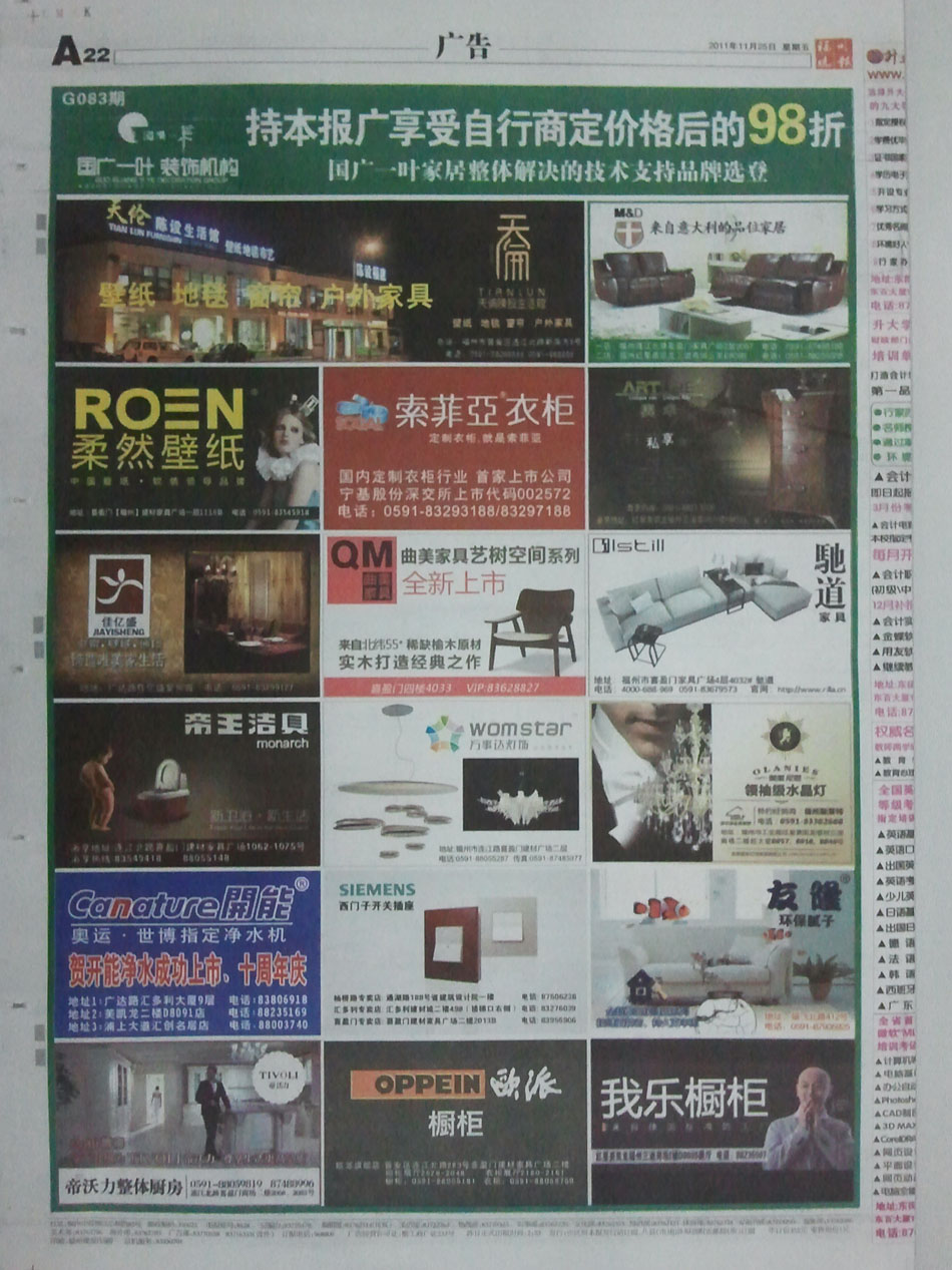 刊登报纸:福州晚报 刊登日期:2011/11/25 位置版面:E家居-1版 期数编号:G083