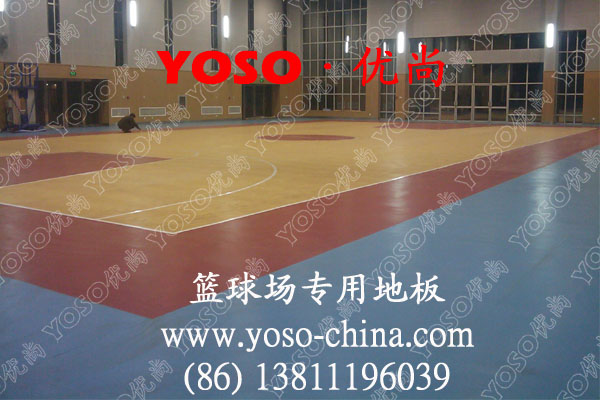 YOSO篮球场专用地板的优势: 1)稳定性 YOSO篮球场专用地板产品结构中添加了1000D的玻璃纤维补强网和特殊网格布纤维交叉编制的加强层,保证了本产品在运动过程中尺寸的稳定性及牢固性,并起到了自动补强作用。 2)牢固性 YOSO篮球场专用地板发泡层底面用纹路,合理的重量能在场地铺开后结合人工用滚地筒将地板与地面接触间的空气排出,形成相对真空状态,更加具有附着力,在运动时更具有稳定性。 3)舒适性 YOSO篮球场专用地板表面经特殊处理,与灯光亮度吻合,不会吸光和反光刺眼,能更好的保护运动员的眼睛,不易产生疲劳,总厚度达4.5mm-6.5mm,配以适当发泡底层为缓冲层,使其更具有减震性和反弹。有效地减轻了运动员的腿部冲击力,脚感舒适,更好的避免了运动损伤,提高运动员水平的发挥。 4)耐久性和耐磨性 YOSO篮球场专用地板采用100%纯PVC优质材料,面层经特殊高环保高科技材料TPU技术处理,及具最佳耐久性和耐磨性,从而增加了地板的使用寿命。 5)保养容易 YOSO篮球场专用地板表层(特别是面层添加特殊高科技TPU处理的表层)对外界污染有排除能力,如表面污染,用干净拖把、清水刷洗即可。重点脏污可用中性清洗剂清洗。单气孔封闭式pvc底纹经过涩感、防水、防霉、抗菌处理,使产品本身具有自我保护的屏障,从而增强了产品的自我排污的功能! 6)优秀的降低噪音效果(降低25db/28db) YOSO篮球场专用地板标准的底层厚度,加上适合的反弹性和合理的吸震性,在运动中具有吸音的功能,隔音效果好。