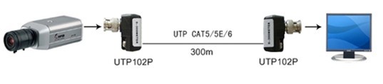 在实际工程中,我们采取两个UTP101P(配成一对)组合起来使用,可传输一路视频、音频或控制信号,传输距离为0-300米,双绞线质量好时可达600米以上。UTP101P也可以与UTP101AR、UTP104AR配对使用,传输距离在600-900米。UTP102P干扰抑制及抗电磁辐射能力较强,可以在各种干扰情况较复杂的环境里使用,并且也不对外界产生电磁干扰,是相当环保和经济的。同时,五类或五类以上非屏蔽双绞线中共有的4对线,每一对线都可以传输一路信号,可以使电话、RS485控制数据、音频、多路视频甚至低压电源共缆传输。与传统视音频传输方案相比,采用无源双绞线视频传输器可以极大地降低成本,提高性能;与其他同类产品相比,优特普科技产品的性能更强,稳定性更好,性价比优势更为明显。